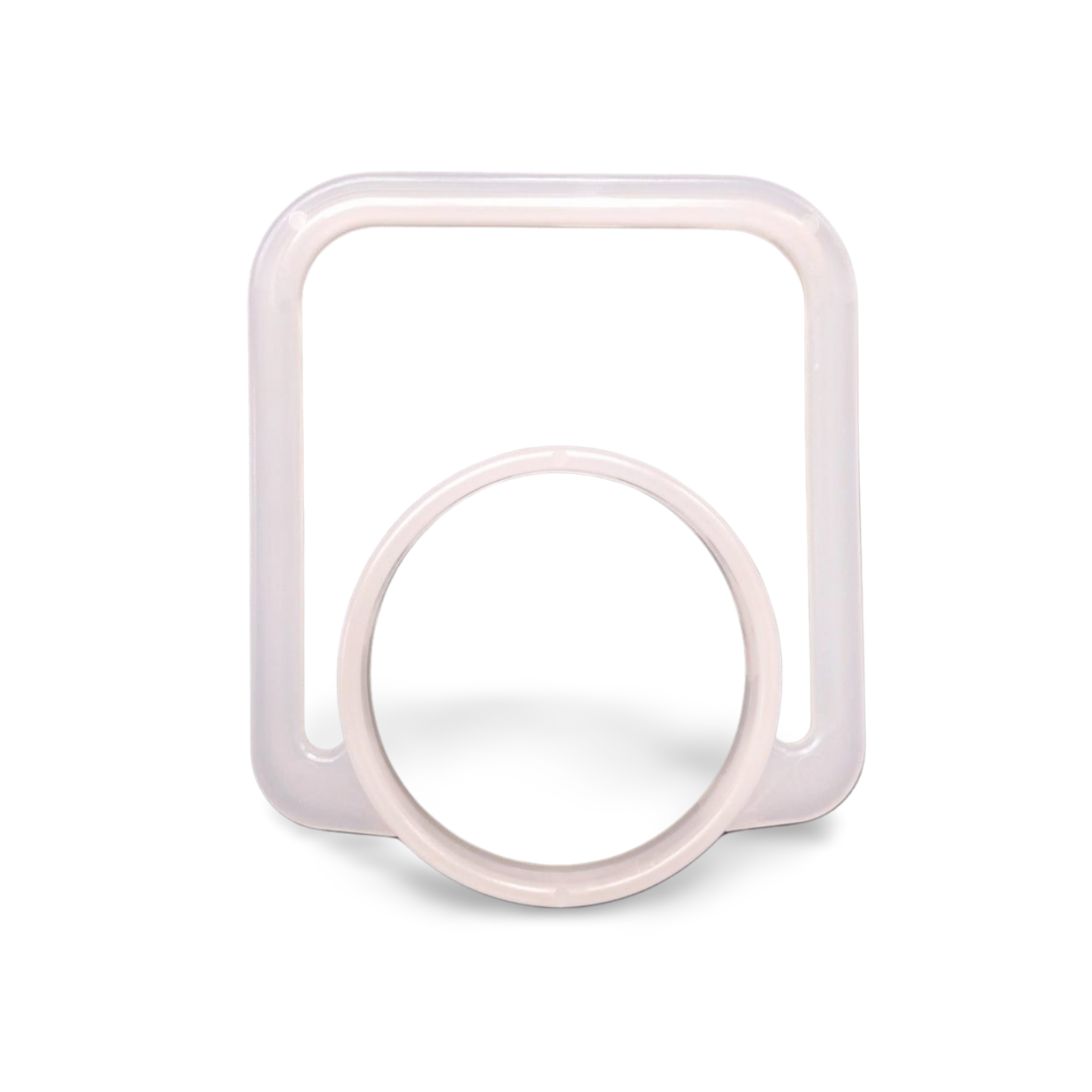 Flexible Plastic Handle for new or replacement installation on the 2 Qt Glass Milk Bottle. Simply heat water close to boiling, dip in to soften plastic, and stretch handle over bottle neck.